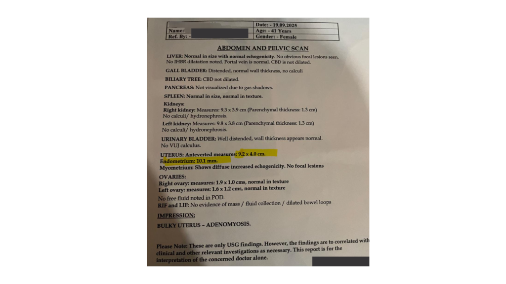 • Endometrium: 10.1 mm